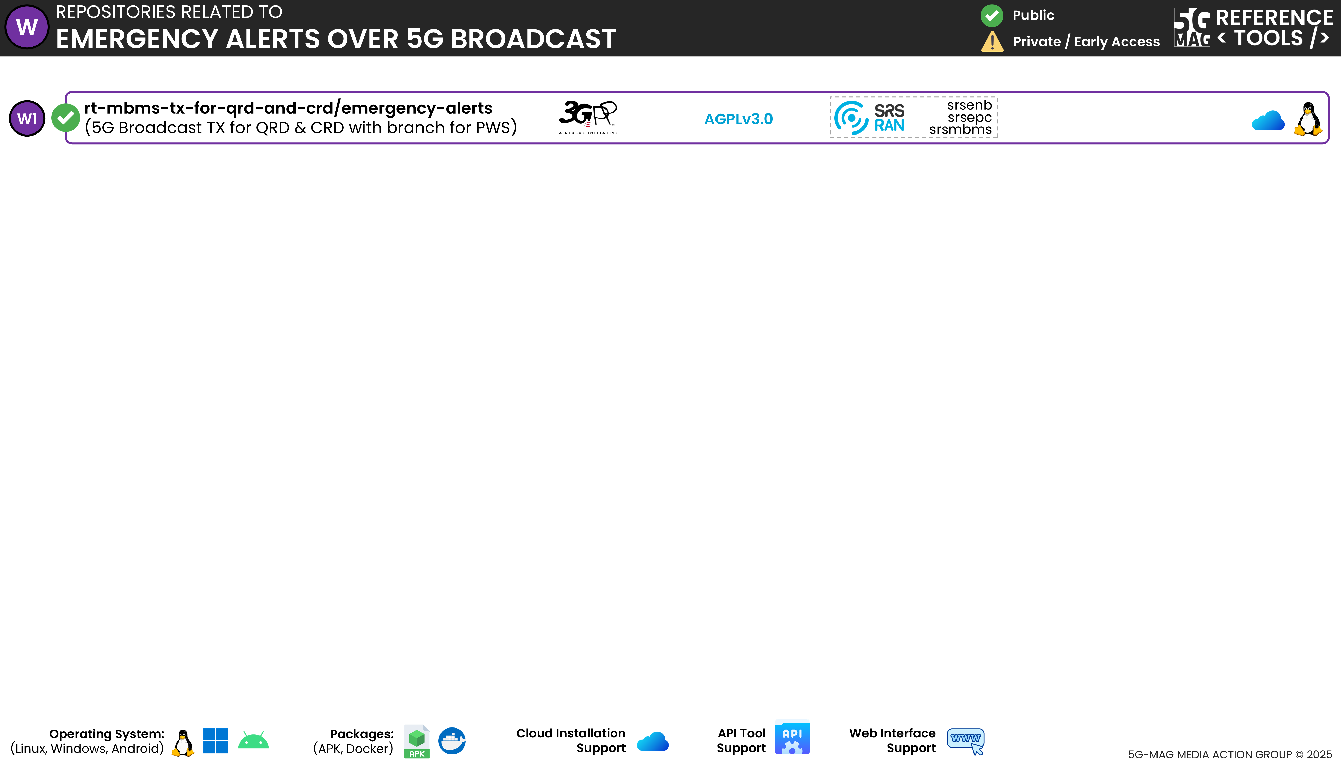 5G Broadcast Transmitter for QRD and CRD (with support for Emergency Alerts)
