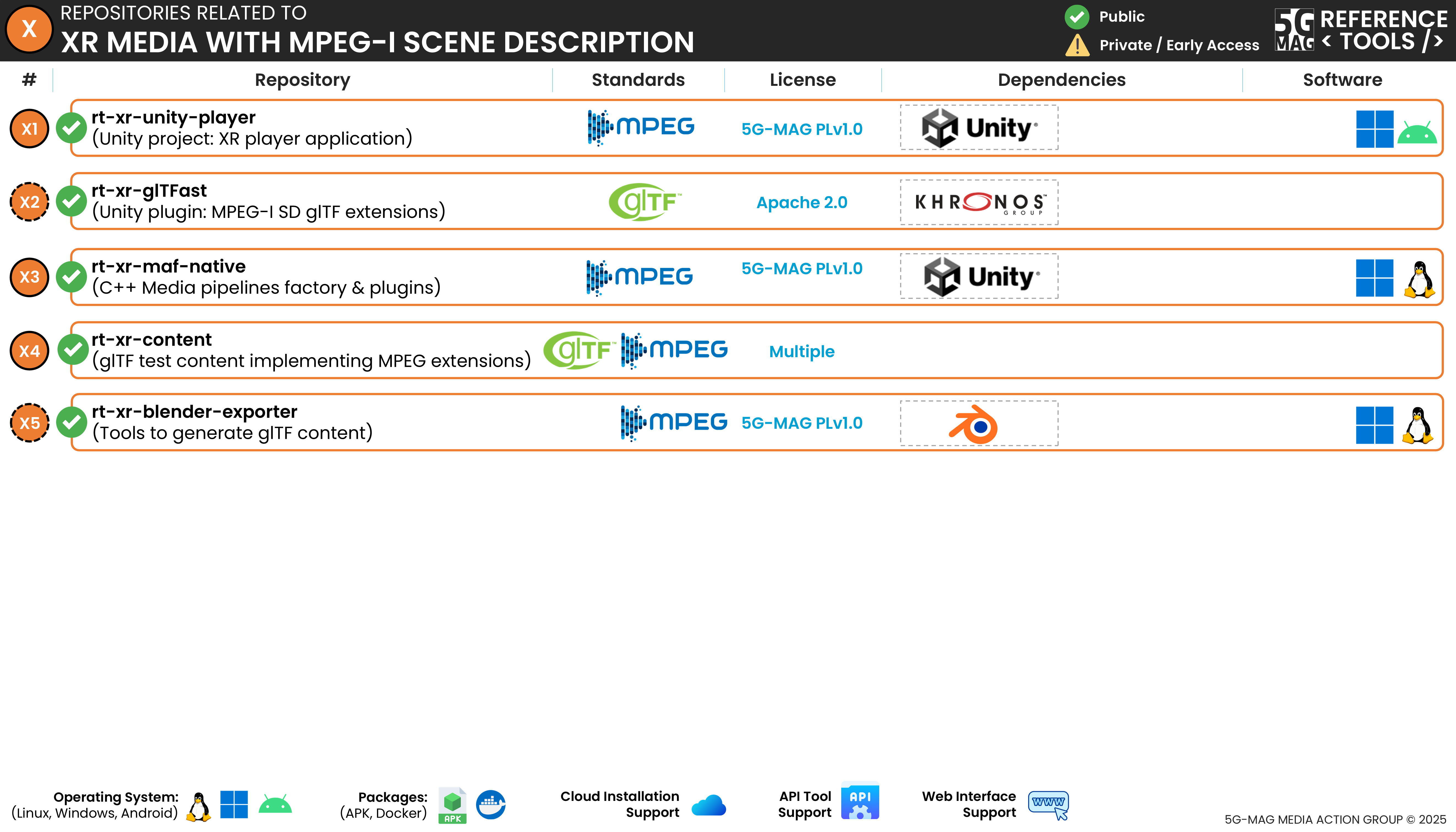 The XR Unity Player is an interactive and XR-capable glTF scene viewer implemented in Unity3D. It supports glTF extensions specified in the MPEG-I Scene Description framework (ISO/IEC 23090-14).